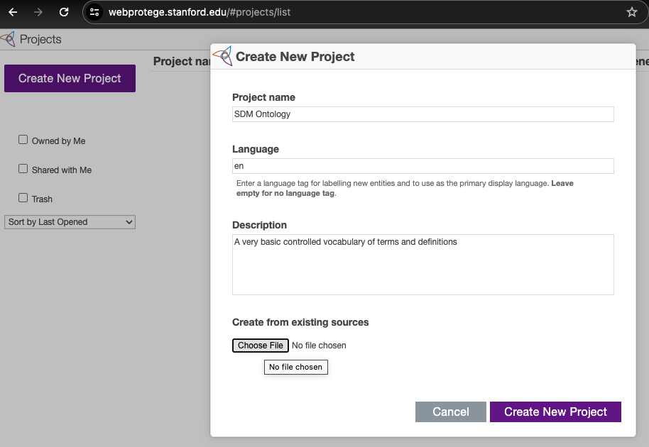 After creating the ontology, you can import the .ttl file into Web Protégé for further editing, visualization, and collaboration. Web Protégé is a web-based ontology editor that allows multiple users to work on the same ontology simultaneously. You can import the ontology file created in the previous step into Web Protégé and start exploring and refining the ontology.